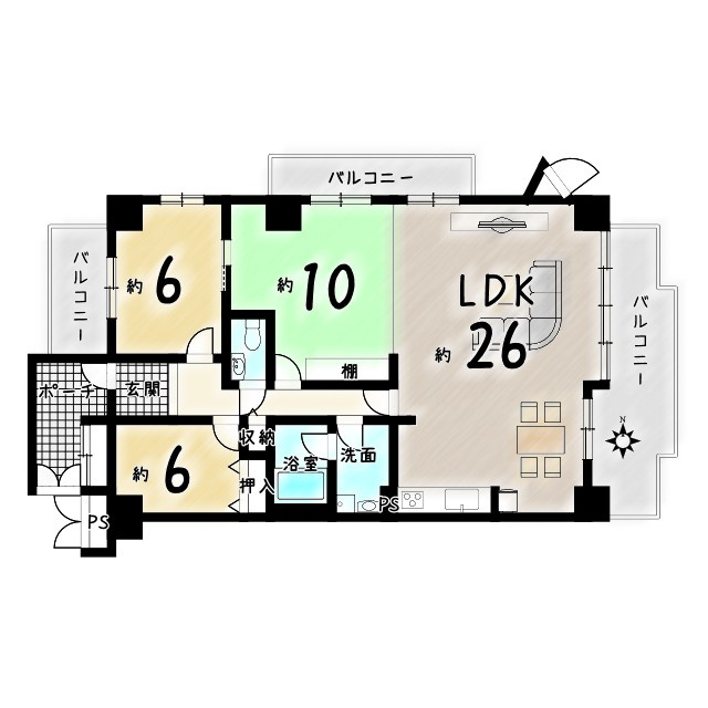 - 2面バルコニー