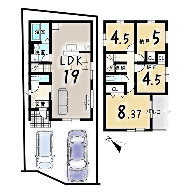 2LDK+2S(納戸)(93.36㎡)